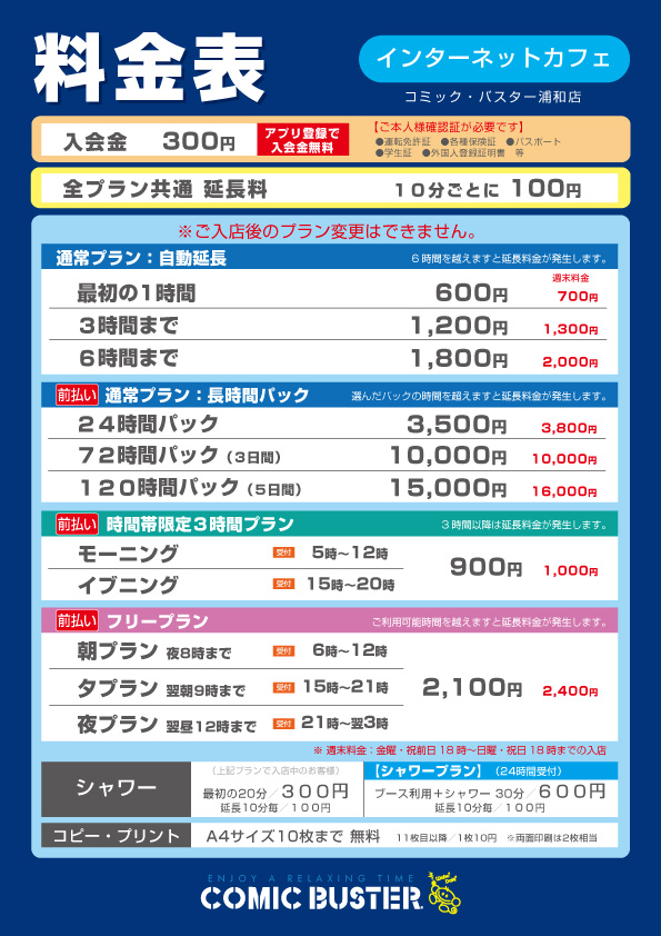 さいたま浦和のネットカフェ・マンガ喫茶はJR浦和駅西口すぐコミック・バスター浦和店で決まり! 浦和駅から歩いて1分、そんな場所なら夜中の来店だって平気。それがコミック・バスター浦和店です! キレイ・お洒落・清潔 あなたも実感!コミック充実! パソコン地域最強! 休憩、コミック、ネット、オンラインゲーム、仮眠、シャワー室完備!! ハイスペックPC、コミック読み放題、ドリンク飲み放題!どんな使い方でもOK! 気軽に立ち寄れるネカフェとして、皆様のご来店をお待ちしております!