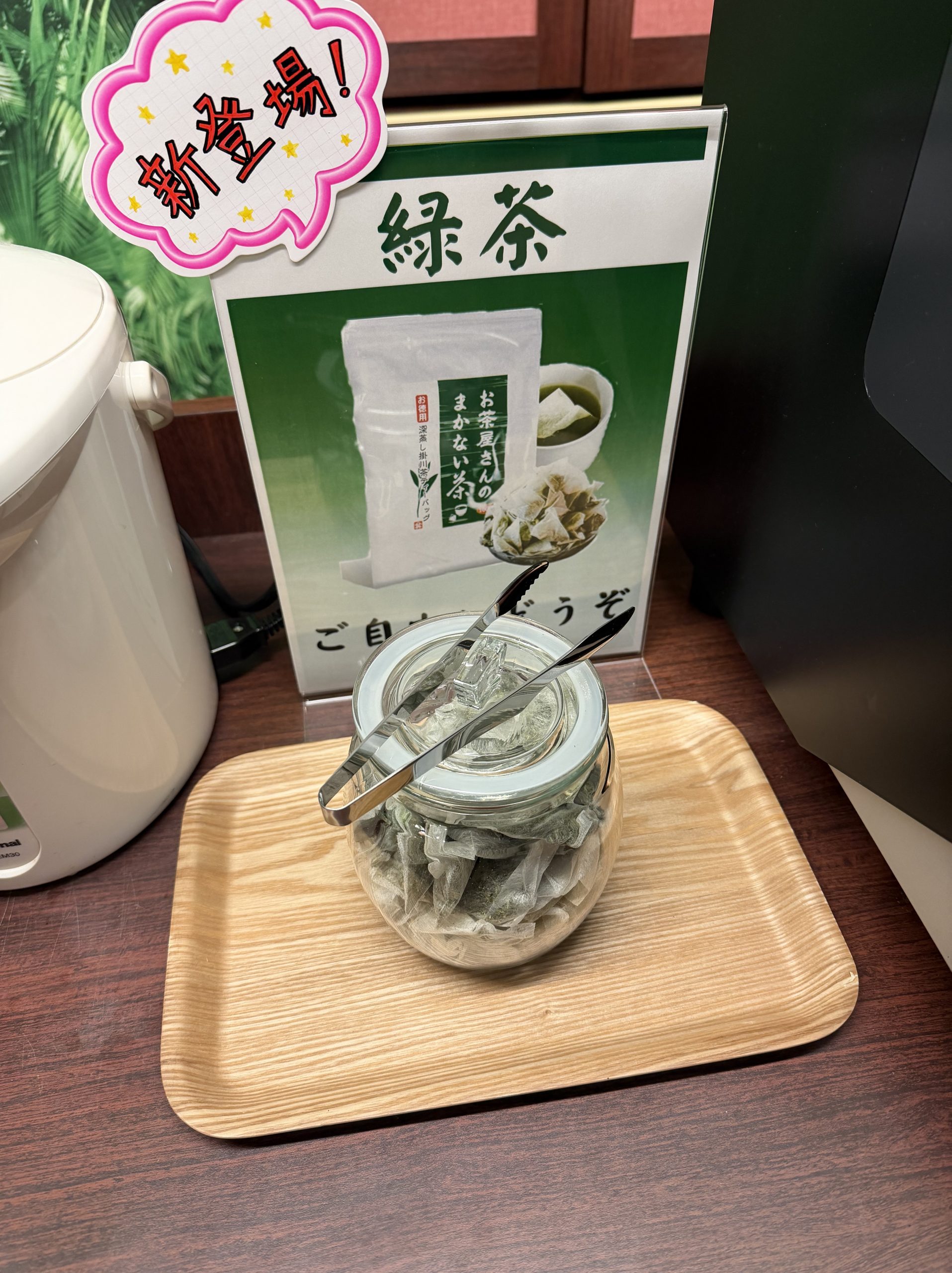 本日より無料の緑茶のティーパックを設置いたしました!