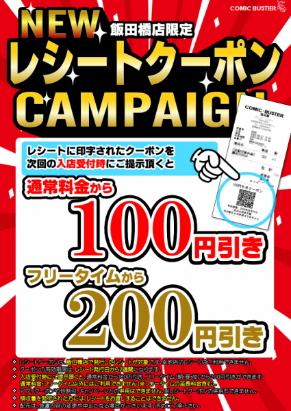 ❖ レシートクーポンは、飯田橋店で発行したレシートが対象です。