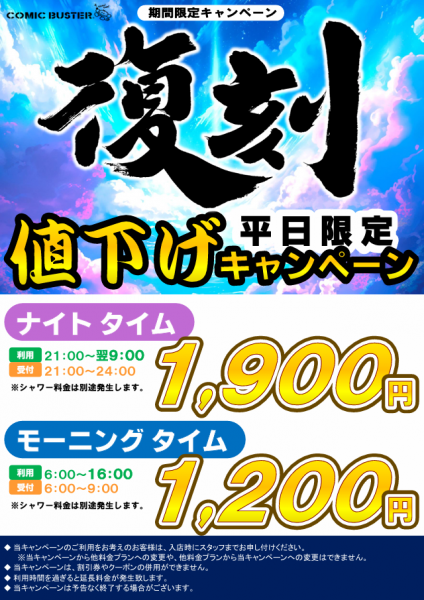★【復刻キャンペーン】平日限定値引きキャンペーン!