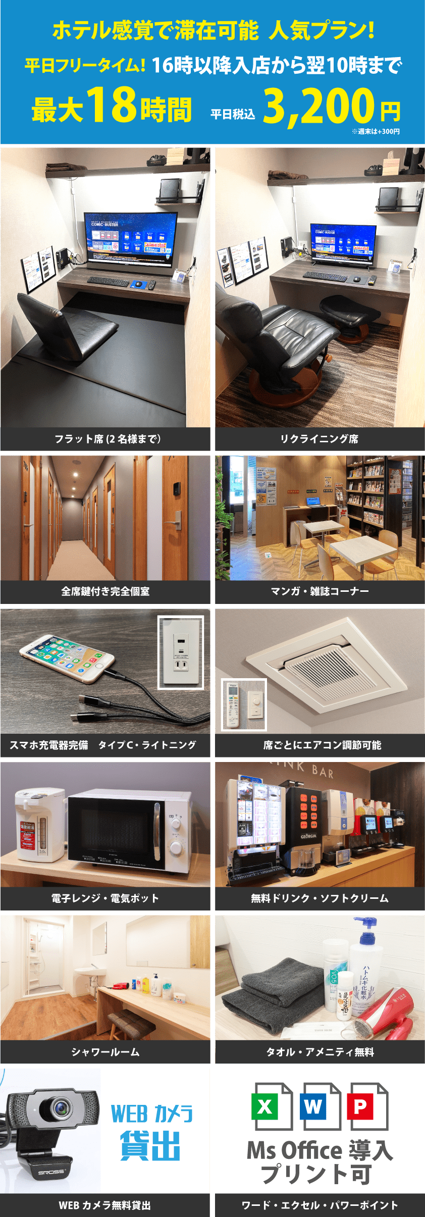 ~鍵付き個室の年齢制限について~ 18歳未満のお客様及び高校生のご利用はお断りしております。(保護者同伴含む) 間違ってご入店の場合は速やかにご退店していただきます。